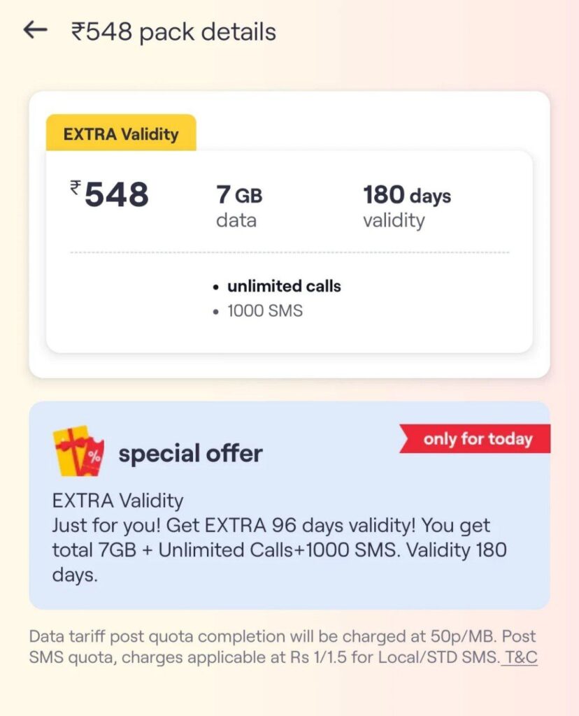 Just go to Vi app, and Go for Recharge. If showing Special offer, 96 Days extra. Then do it. (like below pictures)